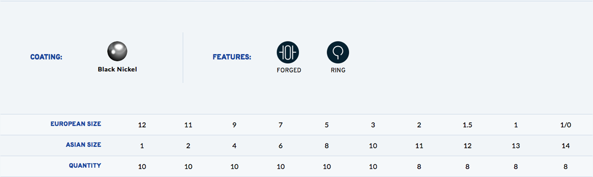The hook point is extremely sharp out of the package, ensuring an excellent hook up rate. Additionally, the black nickel coating provides extra abrasion resistance to the hook point, maintaining its sharpness over time.